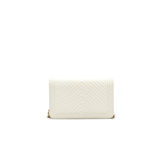 Chanel Chevron Caviar Wallet on Chain Ivory LGHW
