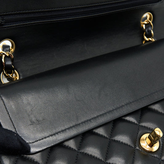 CHANEL Classic Double Flap 10" Chain Shoulder Bag Black Lambskin j92