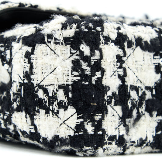 Chanel Classic Double Flap Bag Tweed Black/White SHW