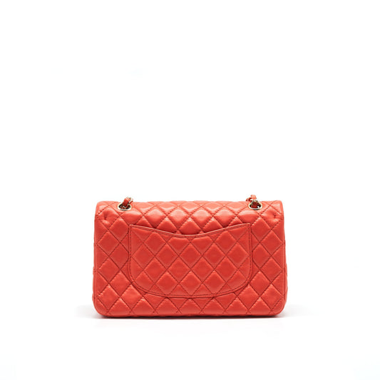 CHANEL CLASSIC MEDIUM DOUBLE FLAP LAMBSKIN IN CORAL LGHW