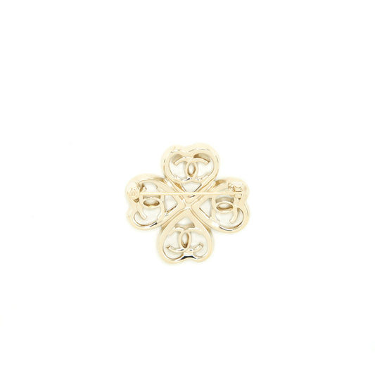 Chanel Clover CC Logo Brooch Light Gold Tone