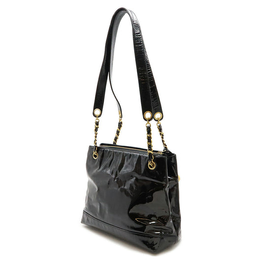 Chanel Coco Mark Chain Wallet Patent Leather Black