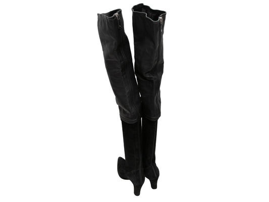 Black Chanel Suede & Leather Pointed-Toe Over-The-Knee Boots Size 37.5C