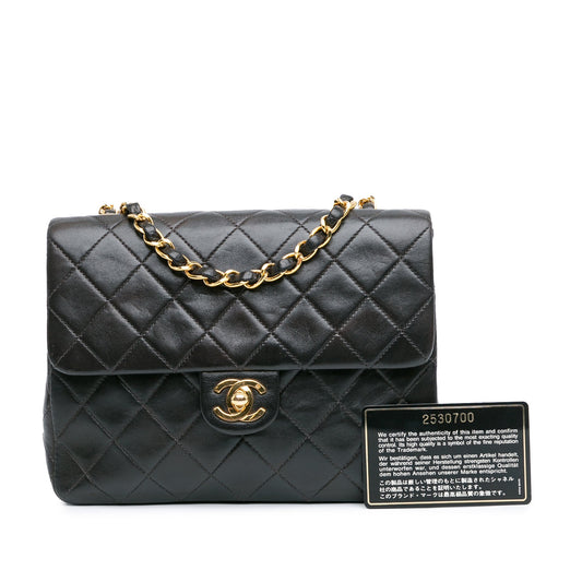 Black Chanel Square Classic Quilted Lambskin Flap Crossbody Bag
