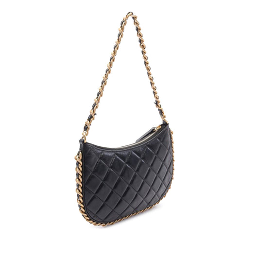 Black Chanel Small Quilted Lambskin Chain Around Hobo