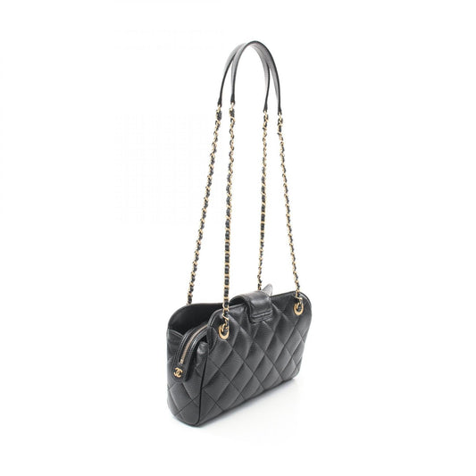 Chanel Leather Bowling Shoulder Bag Black