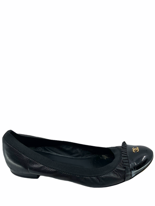 Chanel Leather and Patent Elastic Cap-Toe Spirit Flats Size 7