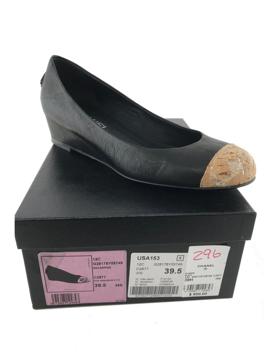 Chanel Leather Cork Cap Toe CC Wedges Size 9.5