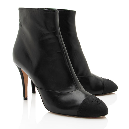 Chanel Leather Grosgrain CC Cap Toe Booties - Size 10 / 40 (SHF-dvns34)