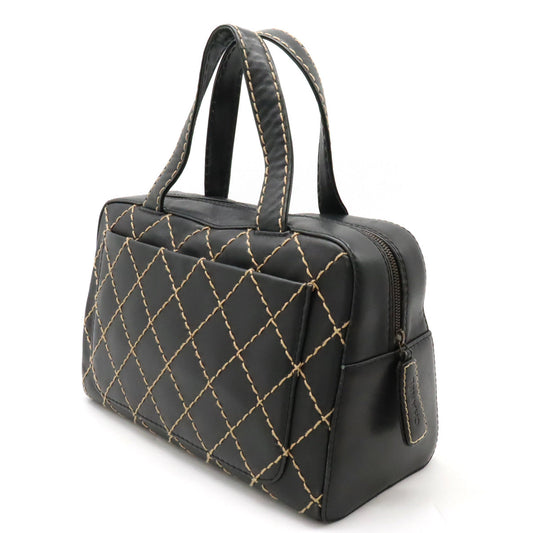 Chanel Leather Wild Stitch Handbag Mini Boston Bag