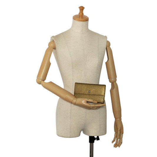 Chanel Leather Tri-Fold Wallet Metallic Khaki