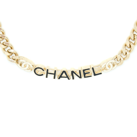 Chanel Letter/CC Logo Choker Enamel Light Gold Tone
