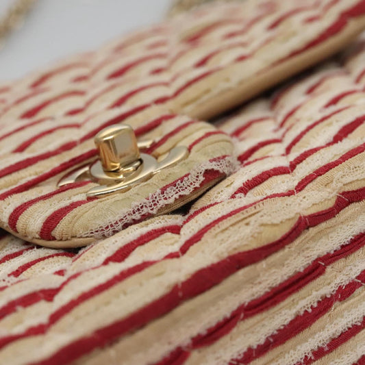 CHANEL Matelasse 25 Border Double Flap Chain Hand Cotton Red CC 112984A