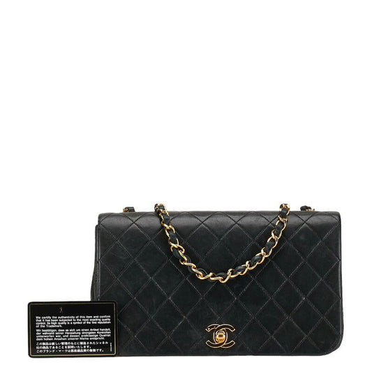 CHANEL Matelasse 25 Chain Shoulder Bag Lamb Skin Black Gold CC PP174