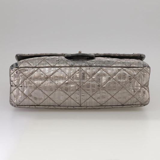 CHANEL Matelasse 25.5 Double Chain Bag Coated leather Silver tone CC PP046