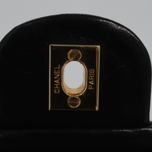 CHANEL Matelasse 25 Turn Lock Chain Hand Bag Lamb Skin Black CC yk14030A