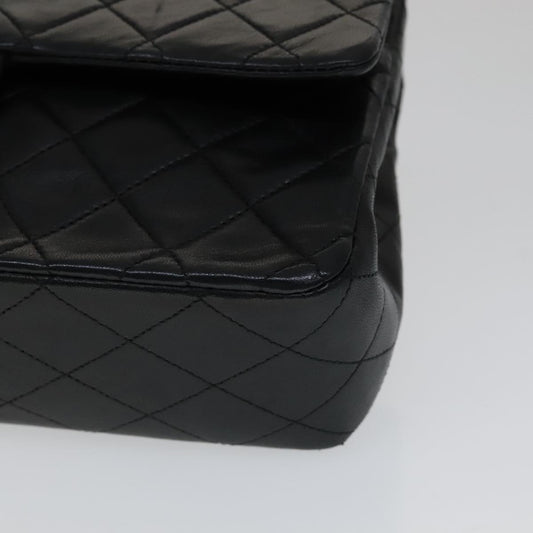 CHANEL Matelasse 25 Double Flap Chain Shoulder Bag Lamb Skin Black yk16454A