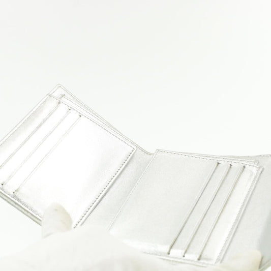 CHANEL Matelasse Bifold Wallet Silver CC cr620