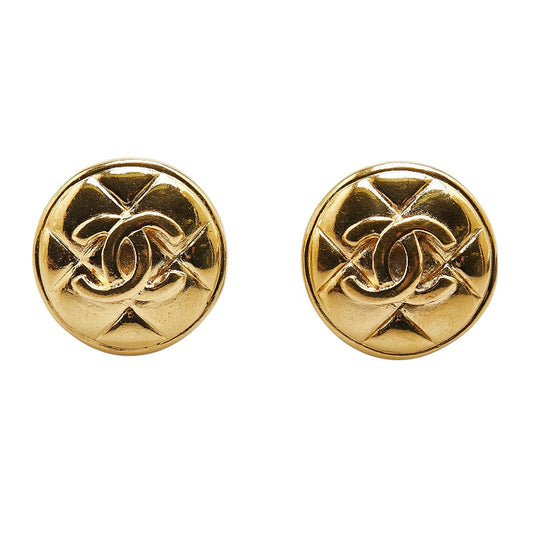 Chanel Matelasse Coco Mark Earrings Gold Black