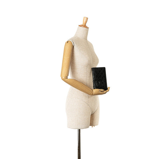 Chanel Matelasse Coco Mark Bifold Wallet Black Lambskin