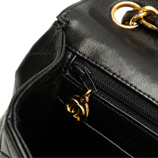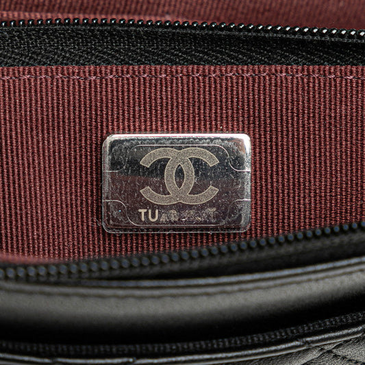 Chanel Matelasse Coco Mark Chain Shoulder Bag Black Lambskin