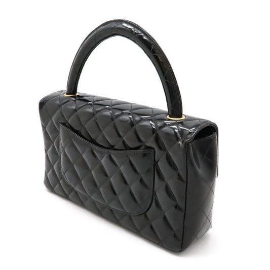 CHANEL Matelasse Hand Bag Patent leather Black Gold CC bs21938