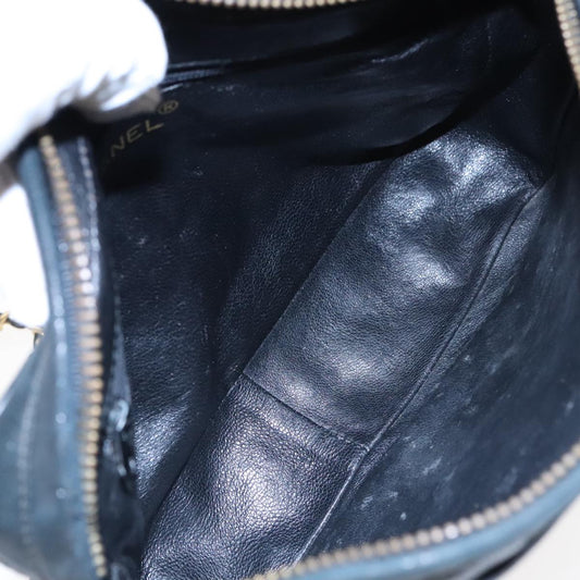 CHANEL Matelasse Hand Bag Lamb Skin Navy CC bs18353