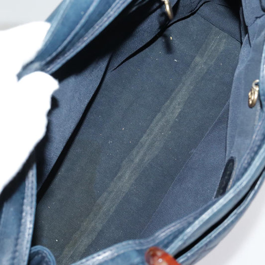 CHANEL Matelasse Hand Bag Satin Blue Gold CC 109061