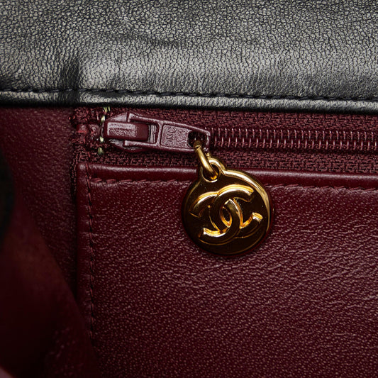 CHANEL Matelasse Lamb Skin Top Handle Mini Flap 2way Bag Black
