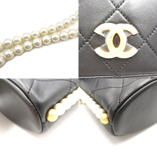 Chanel Matelasse Pearl Chain Wallet Shoulder Bag Black