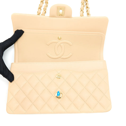 CHANEL MEDIUM CLASSIC DOUBLE FLAP LAMBSKIN BEIGE WITH GHW