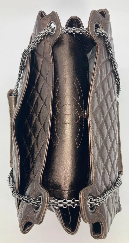 Chanel Metallic Aged Calfskin Quilted Reissue Tall Tote Bronze