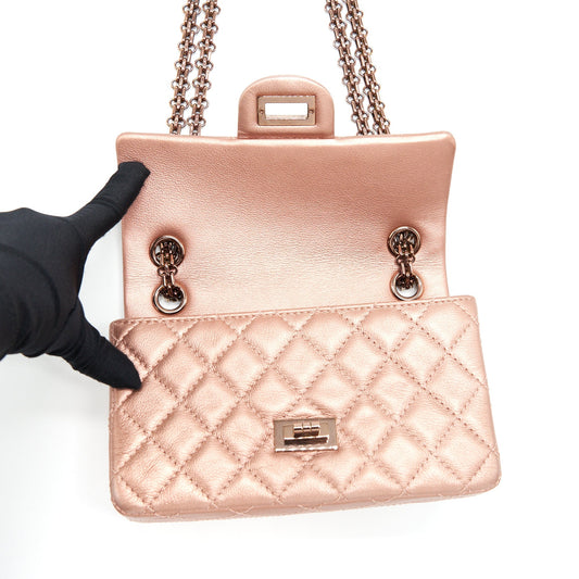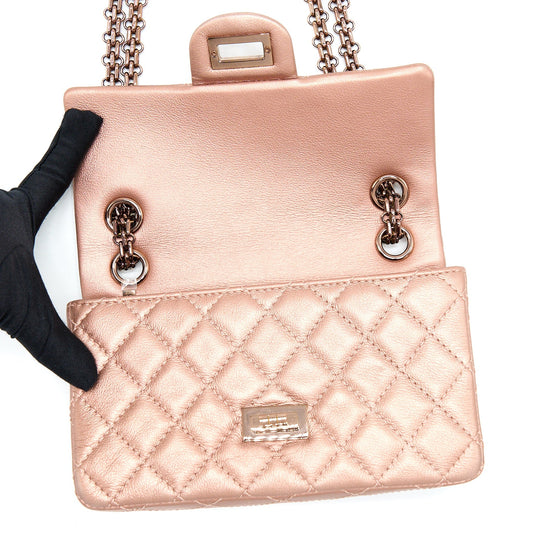 Chanel Mini 2.55 Reissue Flap Bag Calfskin Metallic Pink Brushed Gold (Microchip)
