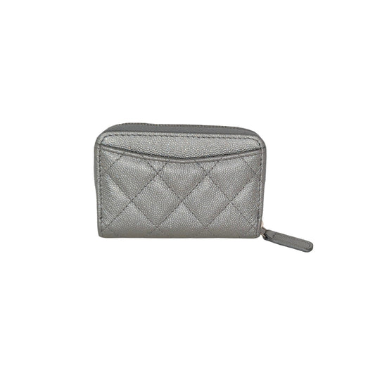 Chanel Metallic Silver Caviar Quilted Zip Coin Purse Wallet