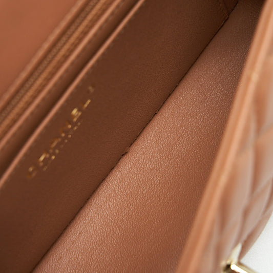 Chanel Mini Rectangular Flap Bag Lambskin Caramel LGHW