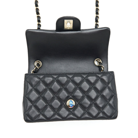 Chanel Mini Rectangular Flap Bag Black LGHW LAMBSKIN