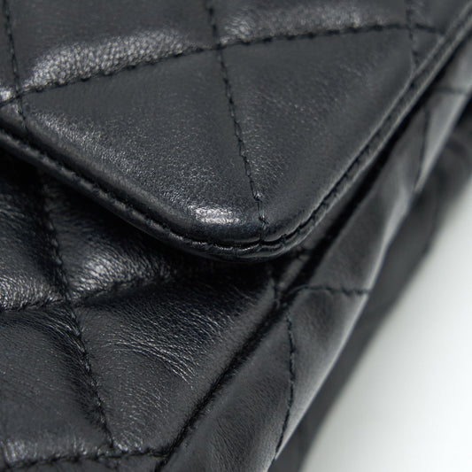 CHANEL Mini Mini Matelasse Chain Pouch Lamb Skin Black Gold CC 89068A