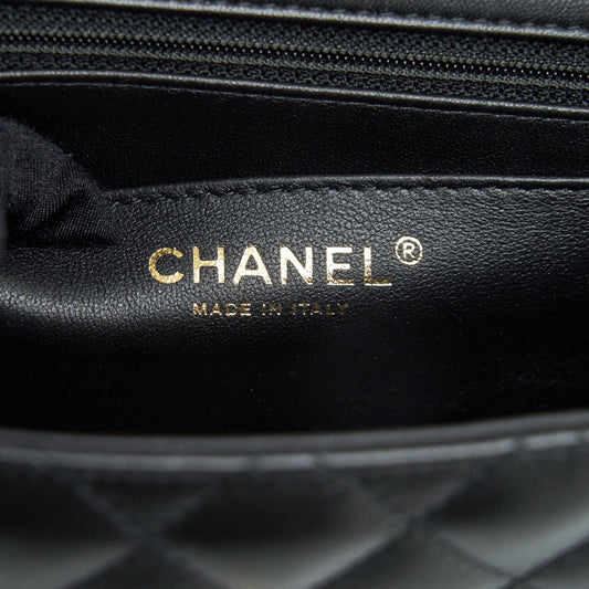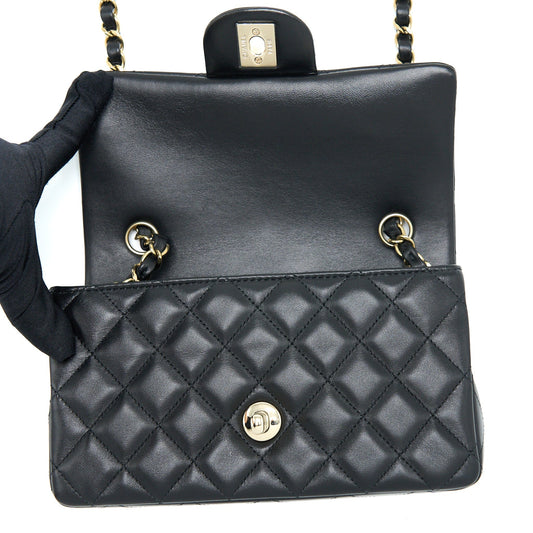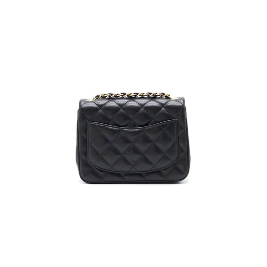 Chanel Mini Square Flap Bag Lambskin Black GHW (Microchip)