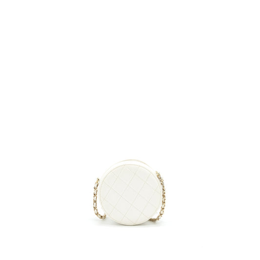Chanel mini round Vanity with Chain Fabric Multi colour GHW