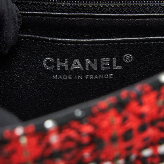 Chanel Mini Rectangular Flap Bag Tweed Red/ Black SHW