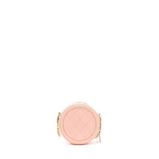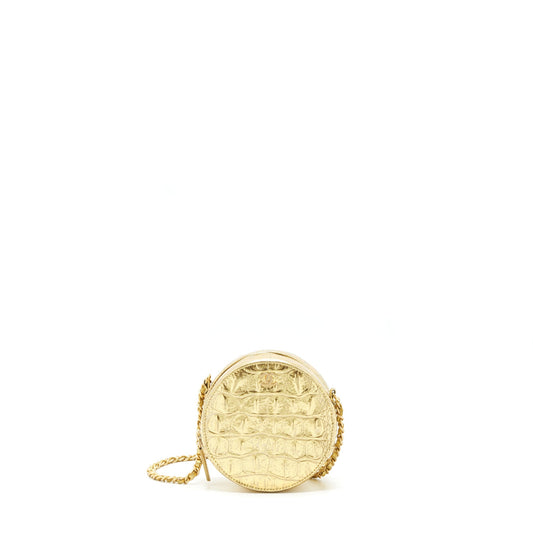 Chanel mini Round Vanity with chain Croc Embossed leather Gold GHW