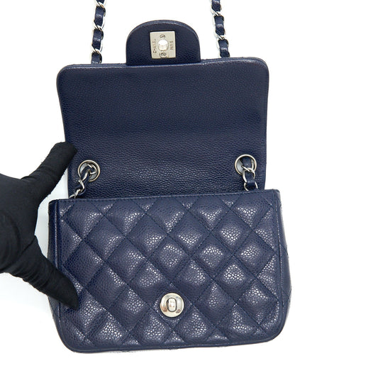 Chanel Mini Square Flap Bag Caviar Navy SHW