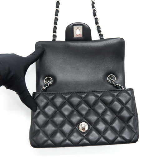 Chanel Mini Square Flap Bag Lambskin Black LGHW (Microchip)