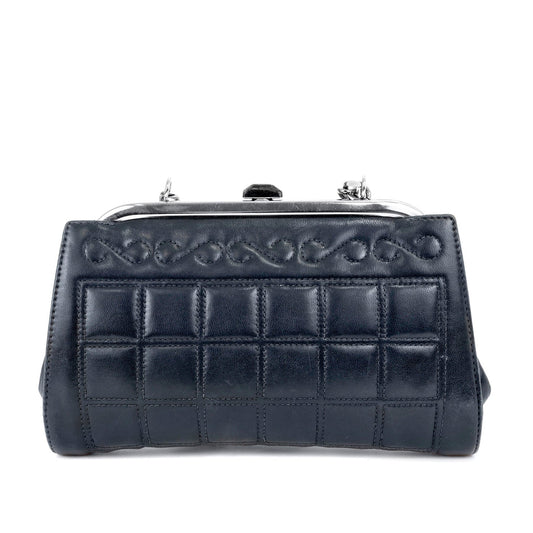 Chanel Navy Mademoiselle Stitch Kiss Lock Clutch