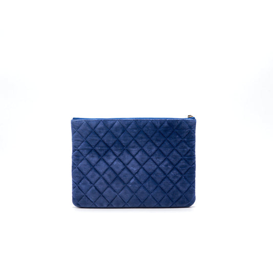Chanel Navy Velvet Classic Quilted Medium O Case Clutch Purse Bag
