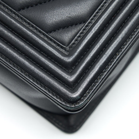 Chanel New Medium Chevron Boy Bag Calfskin Black Ruthenium Hardware