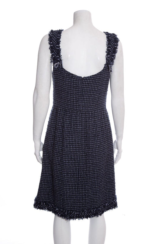 Chanel Navy Tweed Sleeveless Knee Length Dress SZ 40