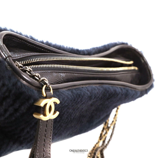 Chanel Navy Shearling Fur and Leather Gabrielle Bag