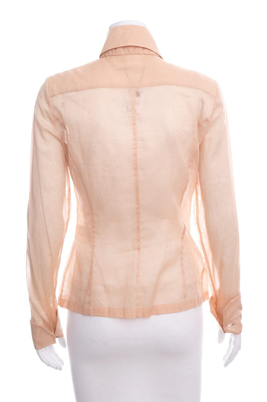 Chanel Nude Long Sleeve Button Up Blouse SZ 38