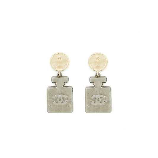 Chanel No.5 Perfume Bottle Earrings Light Gold Tone